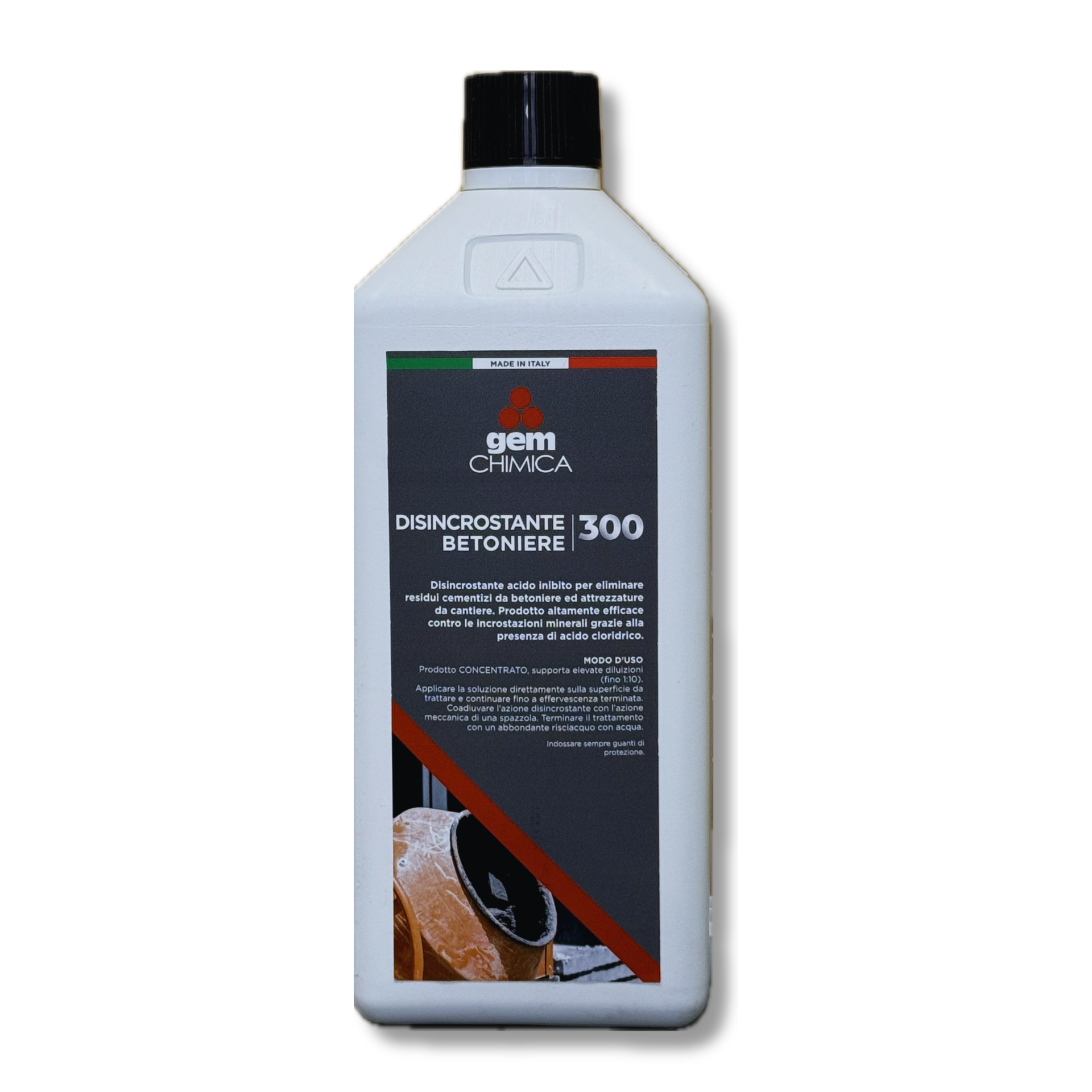 N300 Disincrostante Betoniere është një zbutës acidi me frenim për heqjen e mbetjeve të çimentos nga përzierësit e betonit dhe pajisjet e ndërtimit. Përmbajtja e acidit klorhidrik e bën atë shumë efektiv kundër depozitave minerale.