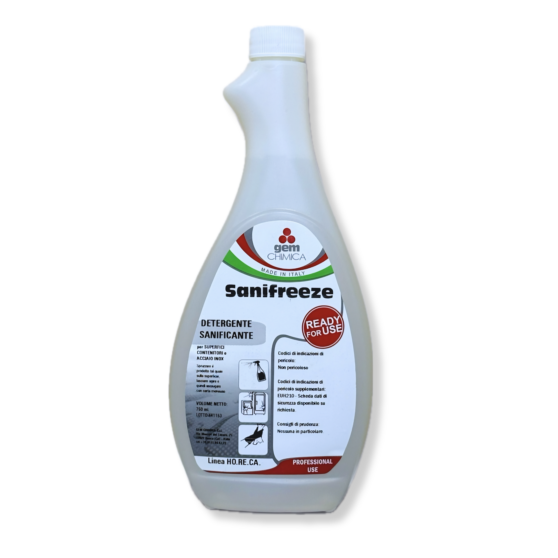 SANIFREEZE është një detergjent me veprim të shpejtë, i përdorshëm për pastrimin dhe lustrimin e frigoriferëve, makinerive të ftohjes, sipërfaqeve të jashtme të pjatalarëseve dhe pajisjeve të tjera çelik inox, plastike dhe xhami në sektorin HO.RE.CA.